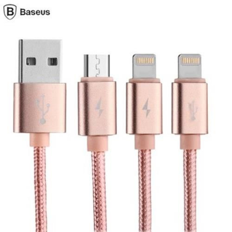 کابل شارژ سه سر بیسوس مدل CAMCLH-PN0R | کابل 3 در 1 با شارژ سریع