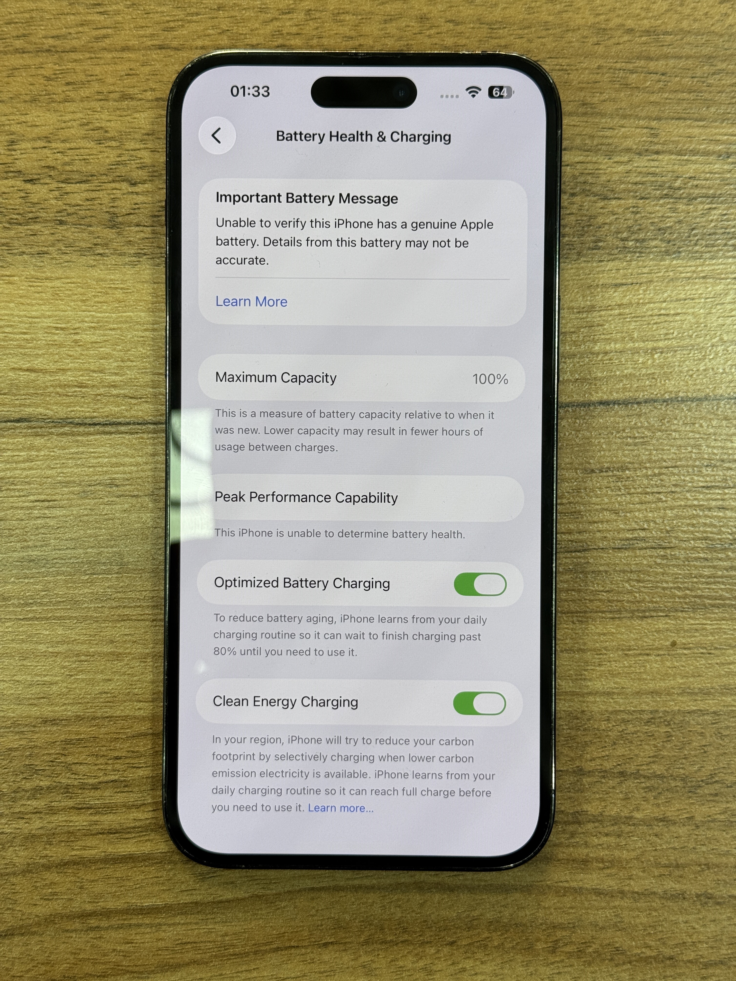 سلامت باتری: 100٪ (باتری تعویض شده)